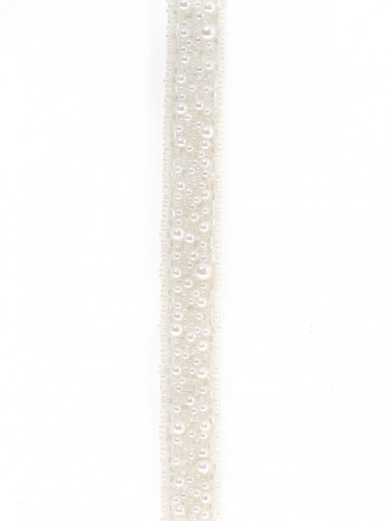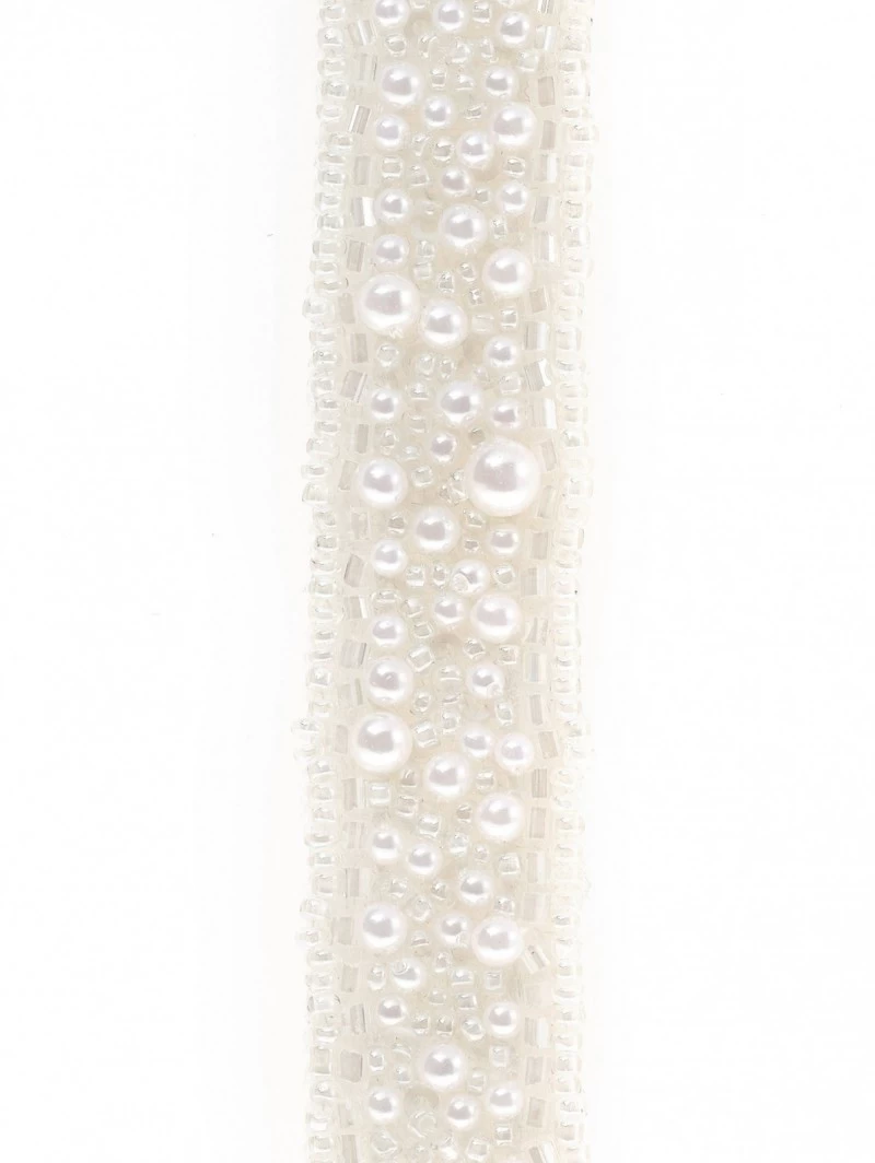 Details: Ivoorkleurige parel riem met verschillende grote parels