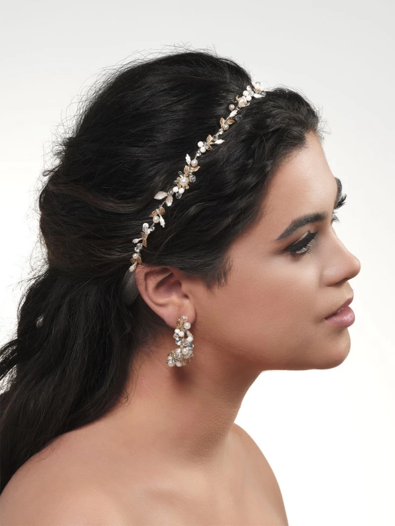 Decoratie: versierd met ivoorkleurige parels, kristallen, strass en gouden blaadjes