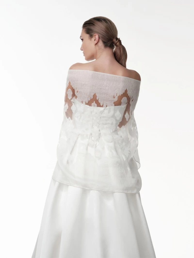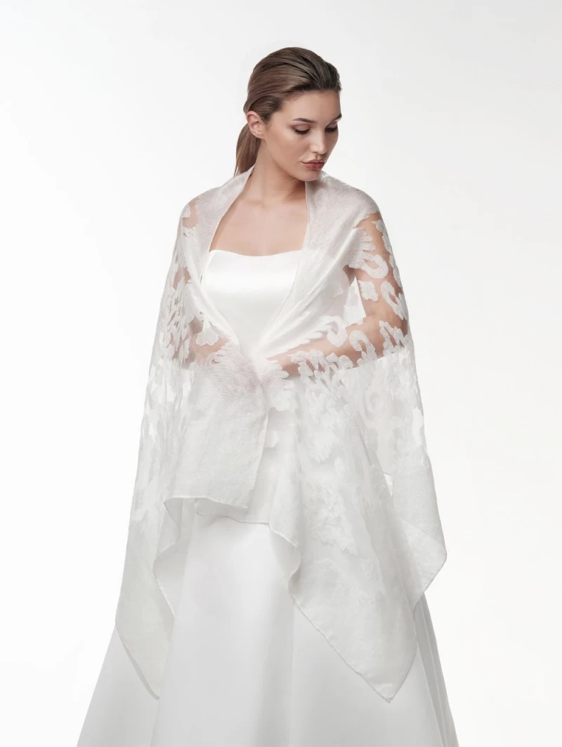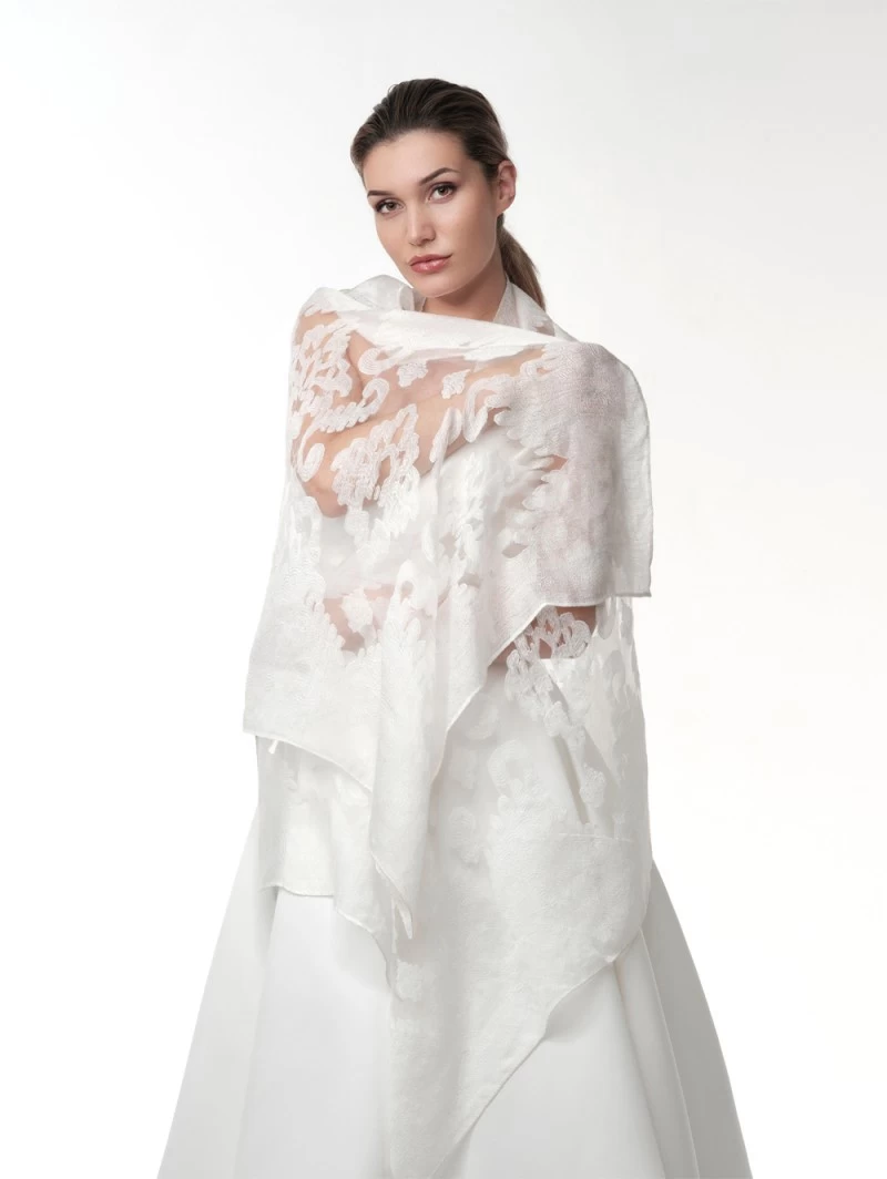 Details: Ivoorkleurige Paisley-sjaal met patroon