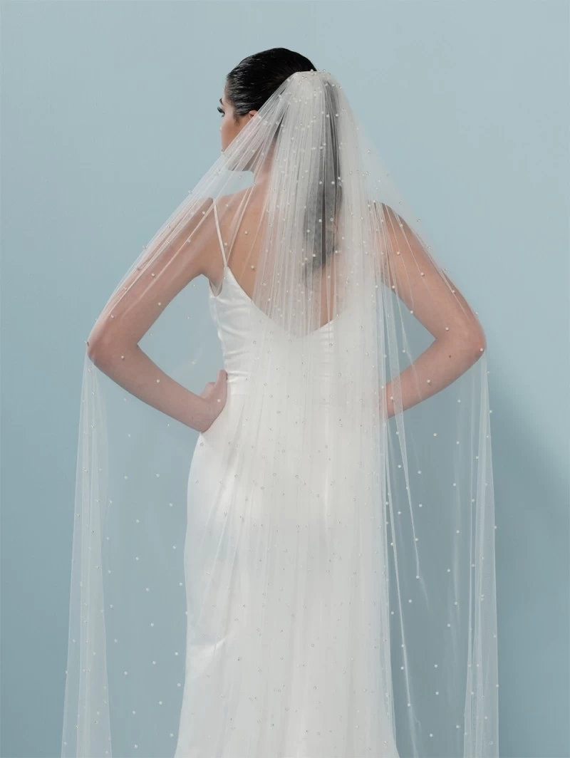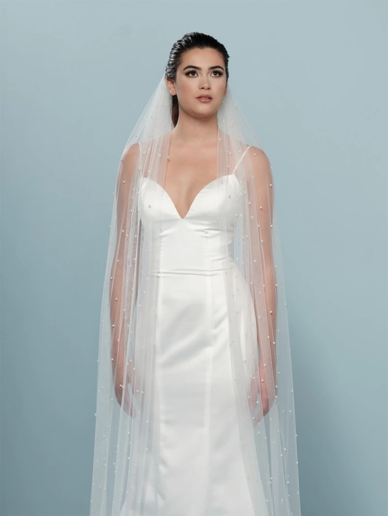 Sluierversiering: versierd met ivoorkleurige parelsÂ