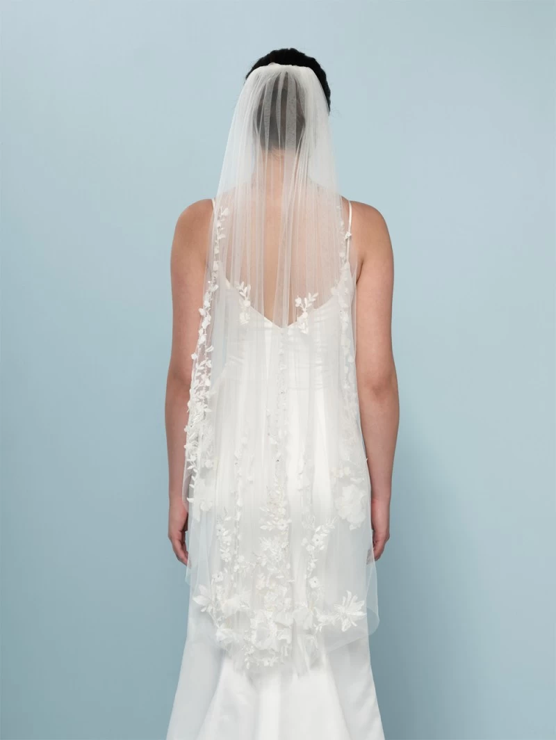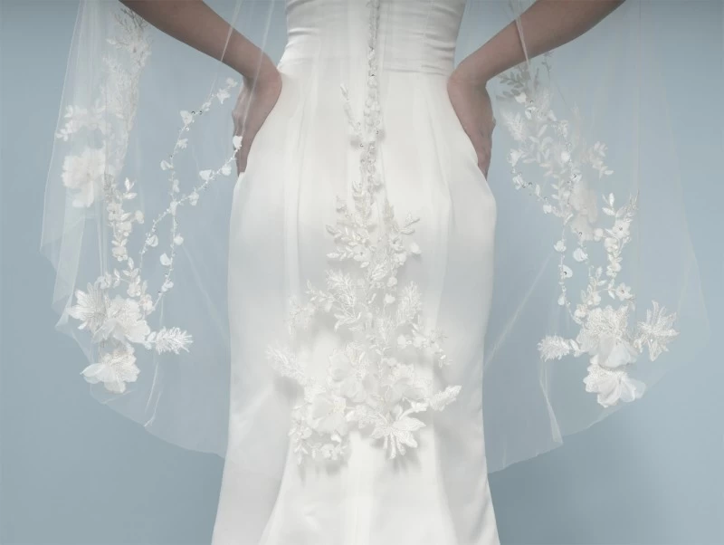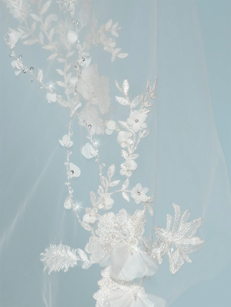 Sluierrand:Â Â deluxe 3D-bloemversiering, borduursel, bloemetjes versierd met pailletjes en kristalletjes, organza bloemetjes
