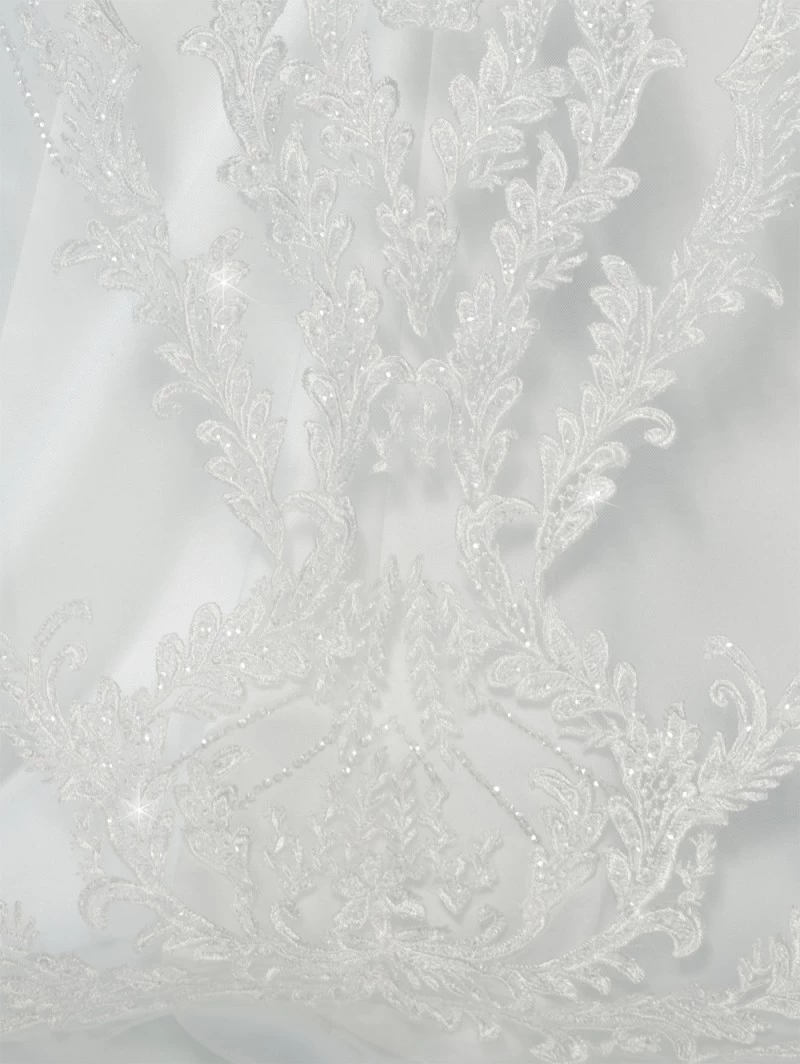 Sluierrand: kantapplicatie en versiering van bladeren en pailletten