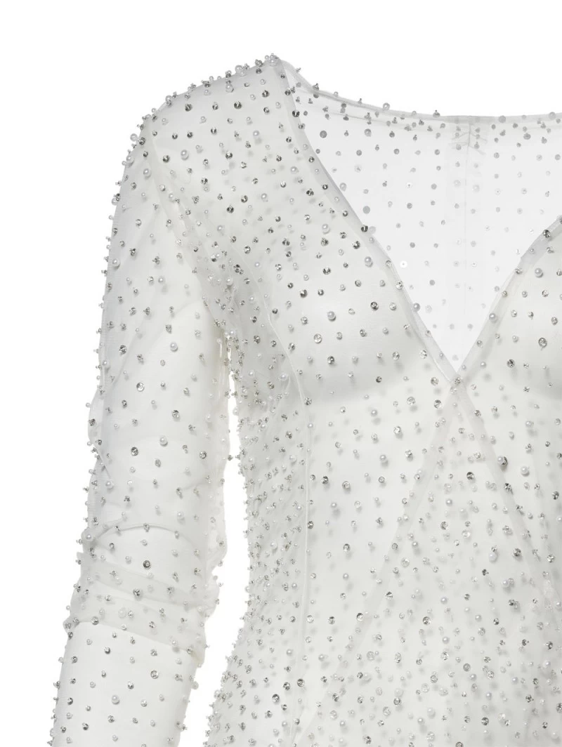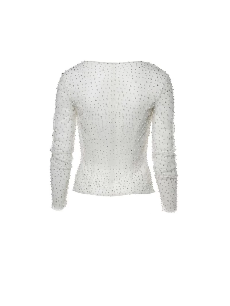 Details: ivoorkleurige luxe top gemaakt van soft-tule, parels, strass steentjes