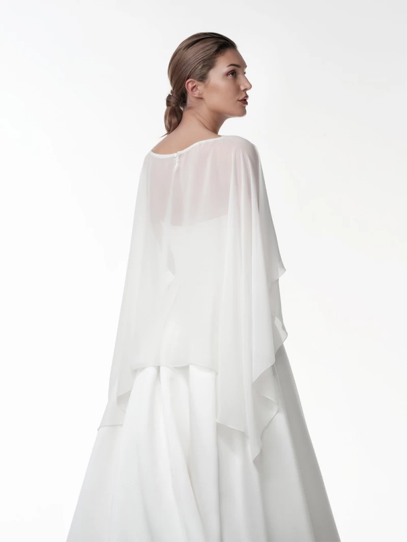 Materiaal: zachte ivoorkleurige crêpe georgette