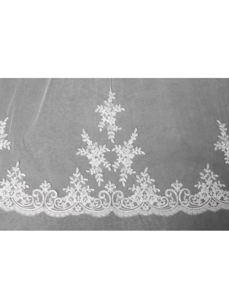 Artikelnummer: YMVHD 5450 Categorieën: Merken, Sluiers Tags: 300 cm lang, bloemmotief, enkellaagse sluier, geschulpte rand, ivoor, kant, medium tule, pailetten, parels, Poirier Enkellaagse Sluier met Luxe Bloemversiering S115-300/1/MED, sluier